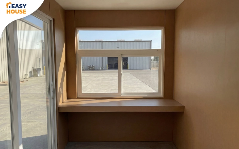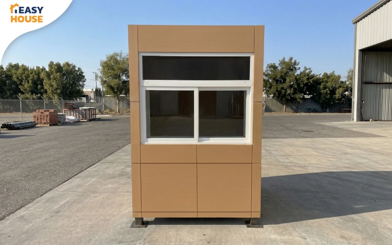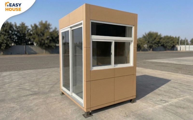 รุ่นคุ้มค่า ดีไซน์ทรงกล่องเรียบ ๆ ดูทันสมัย ประตูบานเลื่อนเปิด–ปิดสะดวกและล็อกกุญแจได้ พื้นทำความสะอาดง่าย เหมาะกับโครงการที่อยากได้ป้อมยามใช้งานง่ายในงบประหยัด