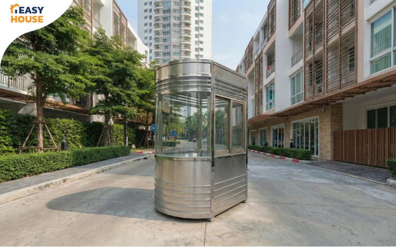 ป้อมยามพาโนรามา TEH-GB16 ดีไซน์กระจกโค้งรอบด้าน ช่วยให้มองเห็นพื้นที่ทางเข้า–ออกได้ชัด งานดูสะอาดตาเหมาะกับลานจอดรถและจุดคัดกรองคนเข้าออก ภายในมีเคาน์เตอร์ทำงาน พร้อมไฟส่องสว่างและปลั๊กใช้งานครบ ต่อไฟแบบปลั๊กพร้อมใช้งาน เปิดใช้งานได้ไว ไม่ยุ่งยาก